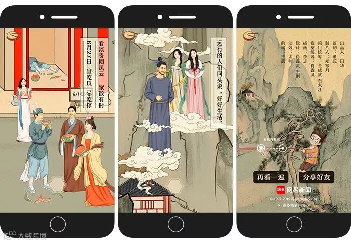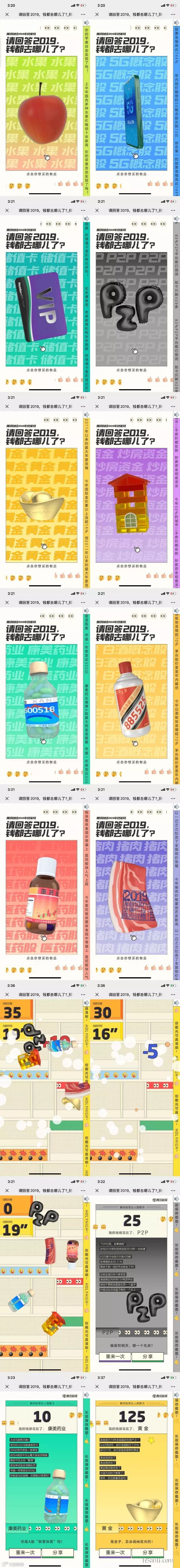 H5整体以视频热点词埋梗+H5互动找梗的形式,找到多少梗,意味着在2019年吃过了多少瓜,可对应获得2019年的不同隐藏身份,如“嗑学家”、“潜水员”等称号,所有称号均由现有职业名词新解而成,富有趣味性。