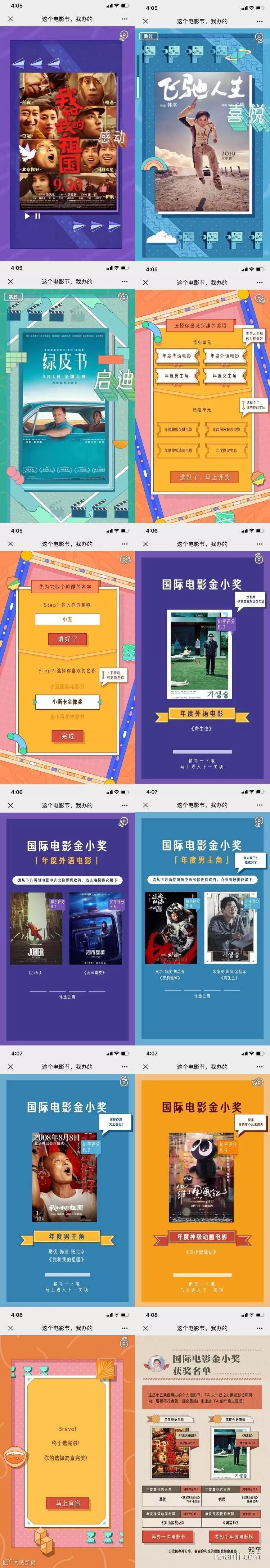 根据自己这一年的观影感受生成颁奖海报的作品,最后用户可登录知乎查看小蓝星推荐的各种榜单,以此为平台增流。