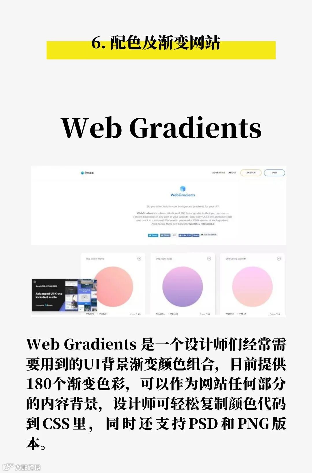 解决了不知道如何配渐变色的难题,在这里找到你想要的渐变,复制色值就可以啦~