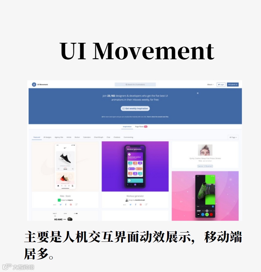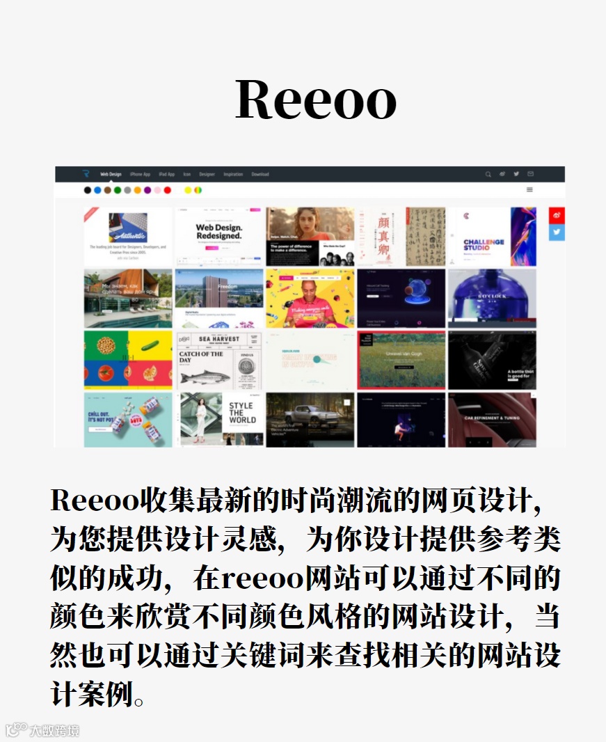 也是国外灵感网站,可具体选择网页设计、APP设计、IPAD设计页面等,还是比较方便的。