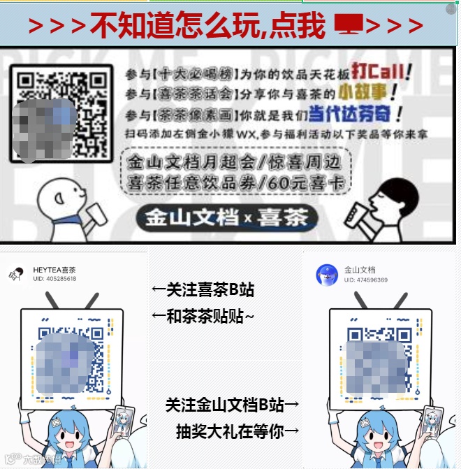 我们开头说的喜茶也同样使用了导流,文档最终导入了三个地方,金山文档的企业微信,喜茶B站,金山文档B站。