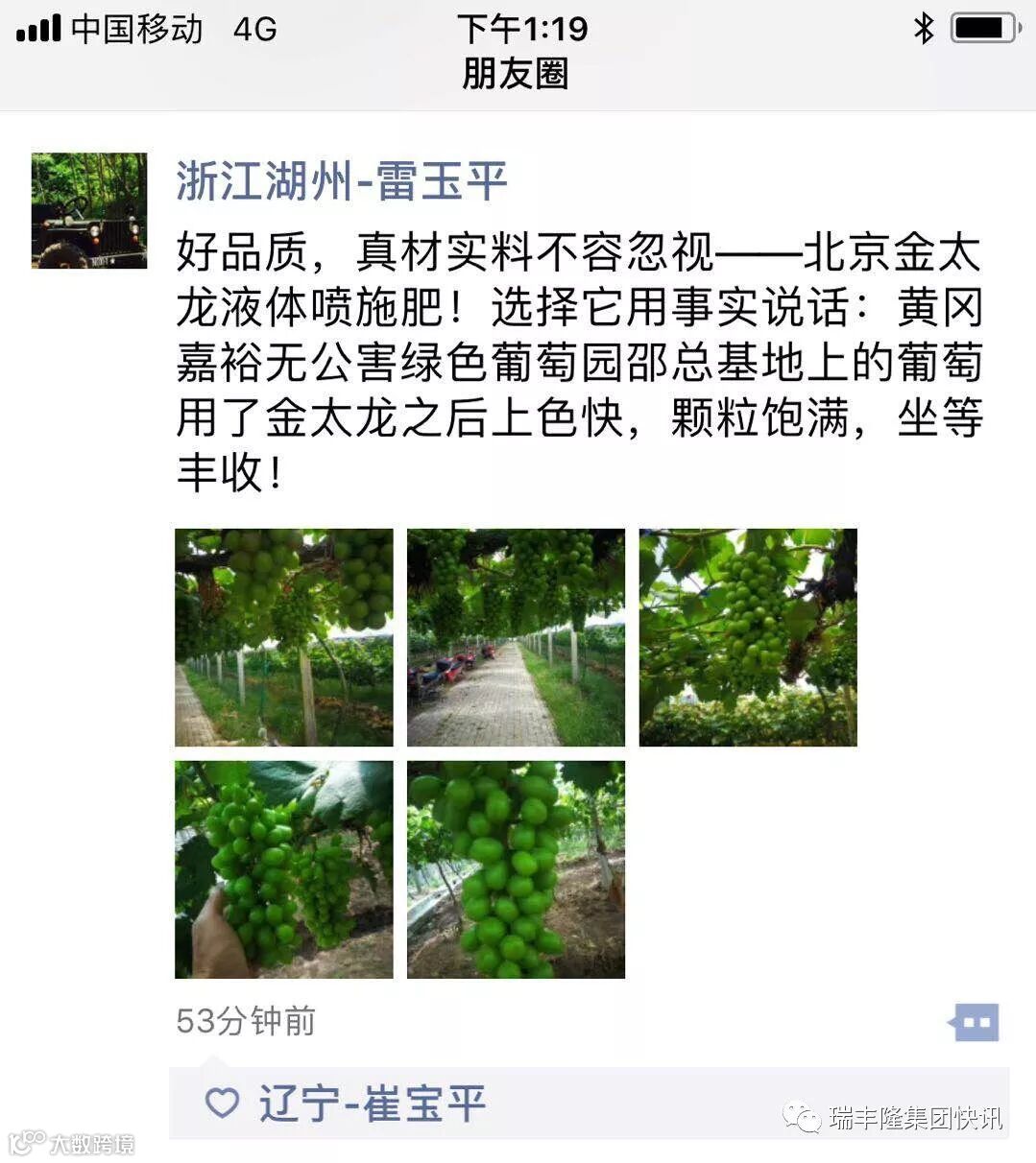 导读:黄冈嘉裕无公害葡萄园喷了金太龙的葡萄生长好!