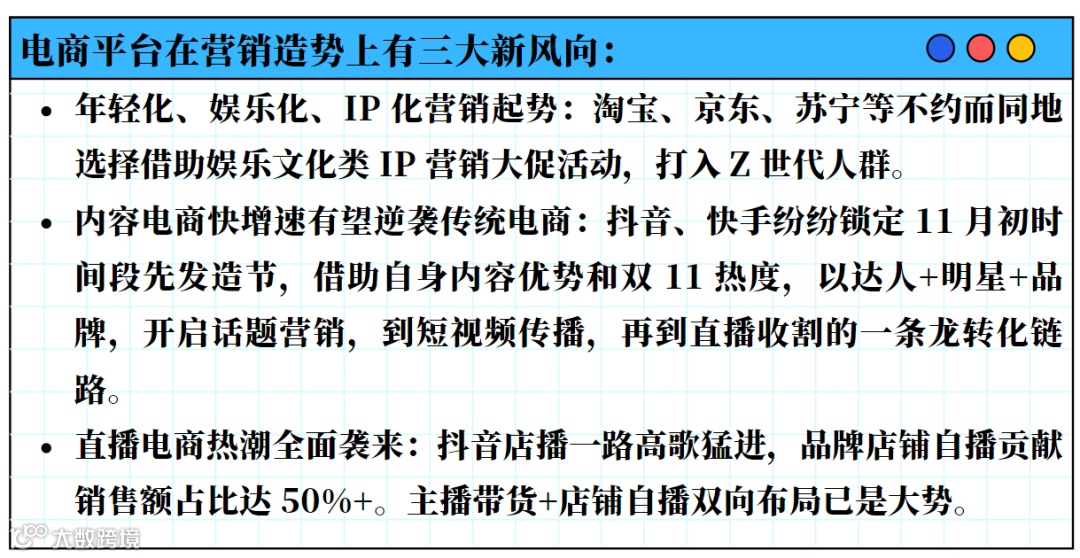 面对双节棍的大促节奏,电商平台在营销造势上,有以下三大新风向:
