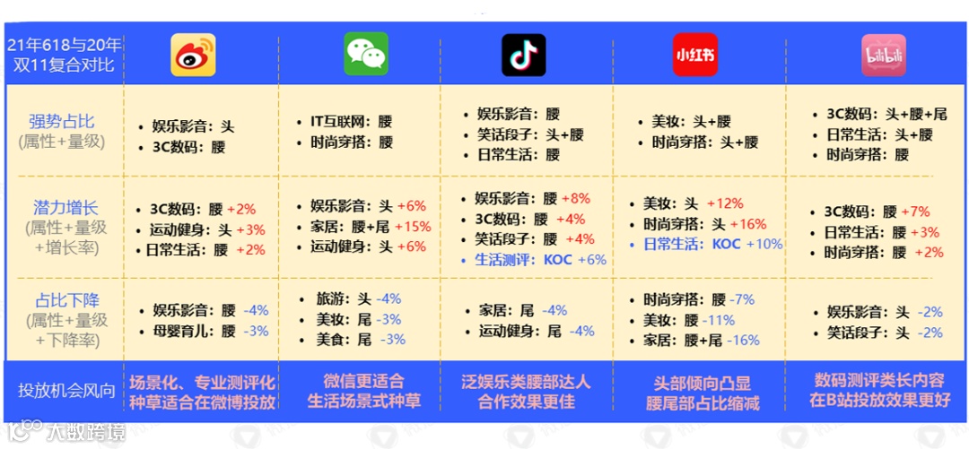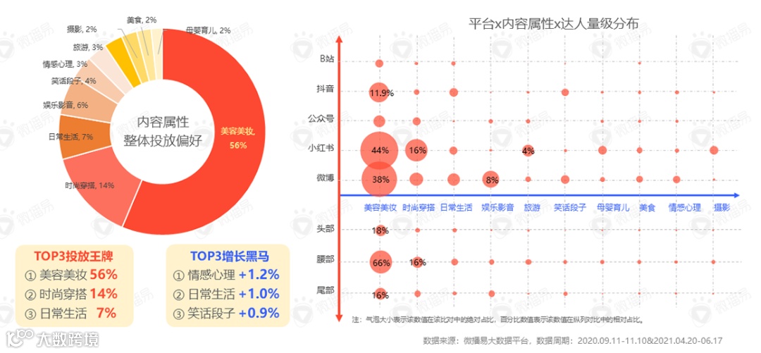在时下日益趋向差异化、细分化的达人营销上,不同品类的广告主在不同自媒体平台的达人量级和内容属性选择上,又有哪些差异化的达人营销传播策略呢?