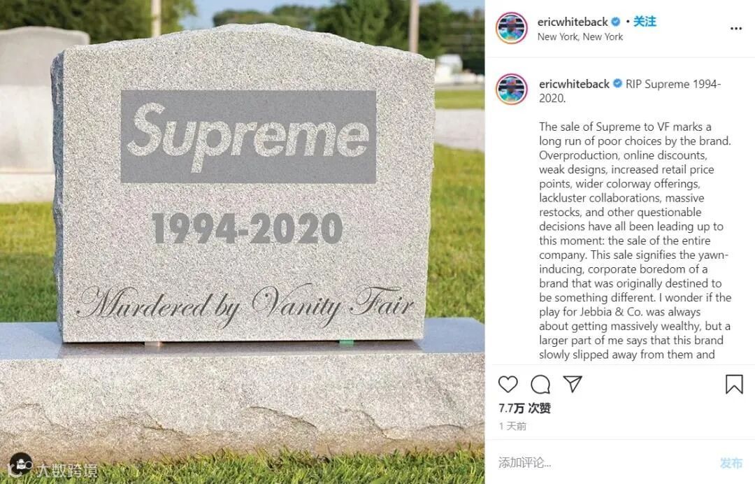 消息一出,铁粉心碎。被资本“收编”的这一步,会是Supreme从街头潮牌到滥大街的开端吗?