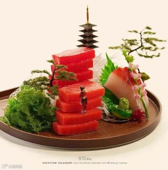 在miniature calendar的简介中,田中说道:「花椰菜和欧芹看起来像森林中的树,叶子漂浮在水面上就是一艘小船,这些我相信我们每个人都能想到。」