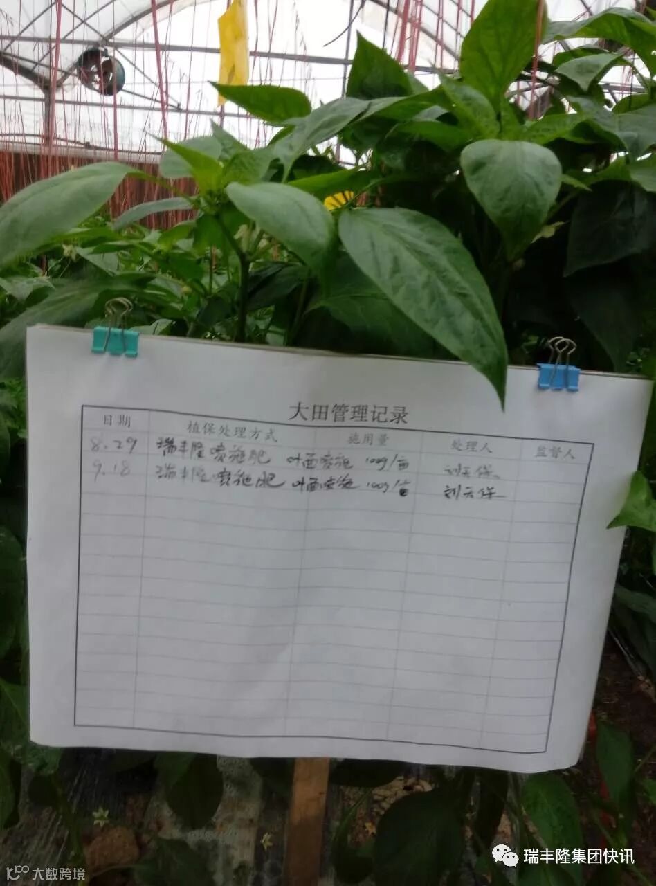 ,根据记录,前后使用了两次,因为是初期试验,所以用量小:100克瑞丰隆兑水30斤进行喷施,效果一样非常好!辣椒结的很多,挂满了辣椒枝,密密实实!