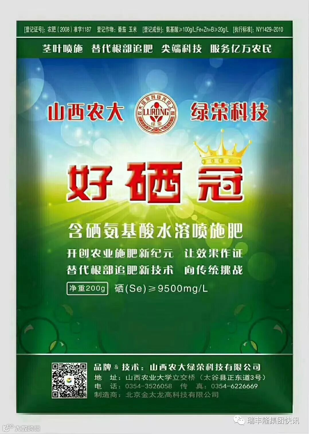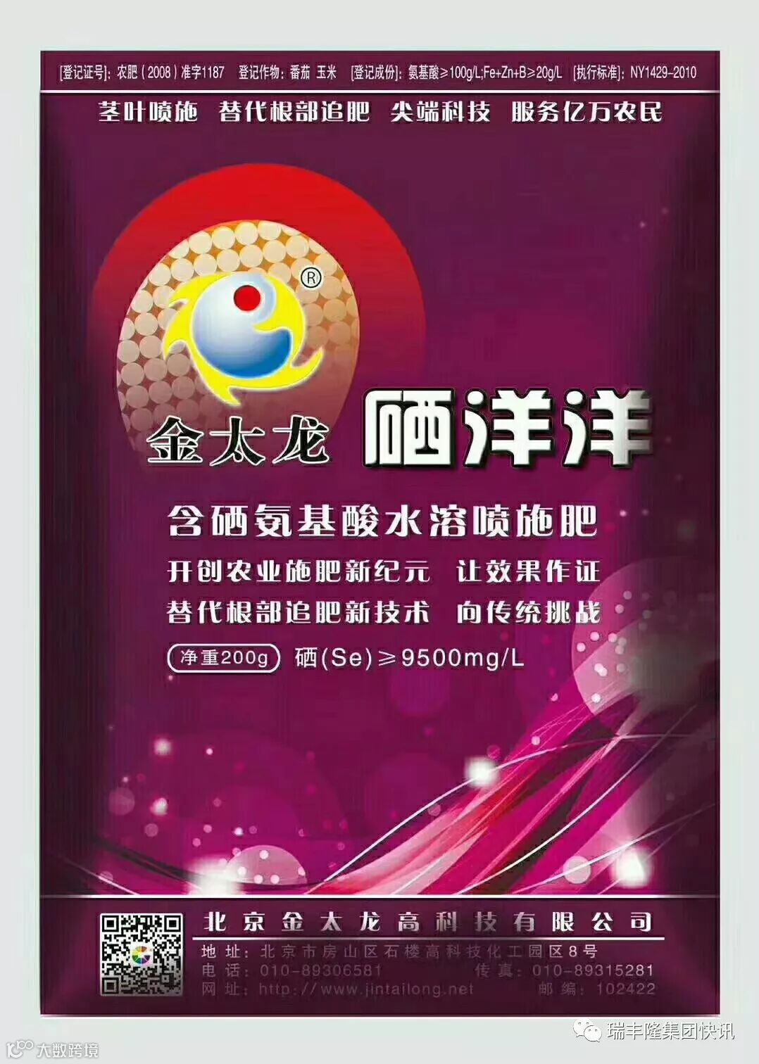 富硒这块,最容易的是“猕猴桃”,最难的是“梨与苹果”。今年在常州做富硒试验的有“中国农科院”、“南农大”,其结果都没达到水果富硒最低标准。据第三方检测单位介绍,金太龙常州市场部送检样品是长三角富硒产品数字最高,质量最优之产品。其数值是其他产品的几倍!因此,瑞丰隆集团特推出:富硒喷施肥系列产品!