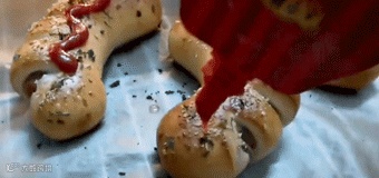 油润的肠仔和光滑的面团在冥冥之中相遇,肠仔被面团温柔的拥抱,肠仔的父母准备了一些聘礼(沙拉酱),面团的爸妈也添置了一些彩礼(番茄酱)。