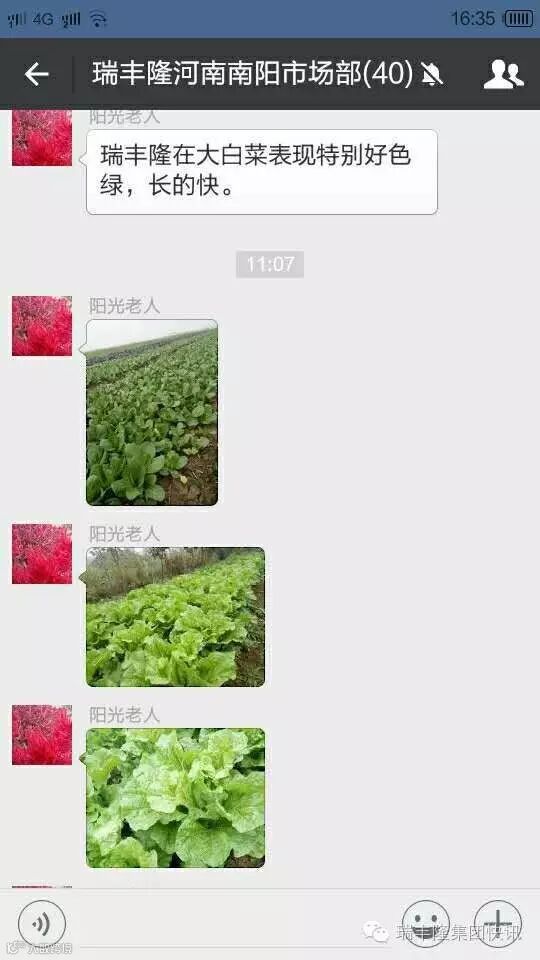 瑞丰隆集团快讯当初小编创立这个“代言”的板块就是为了让使用过和未使用过公司产品的用户和潜在客户发现这个产品的“好”,发现公司经营多年的用心良苦!并把这个好产品好效果传递下去!功夫不负有心人,是金子在哪里都会发光的——河南南阳市场昨日也传回图片,客户对瑞丰隆的效果可谓是众望所归,不论瓜果蔬菜都是大大的赞!尤其是在白菜上——色绿,长得快!