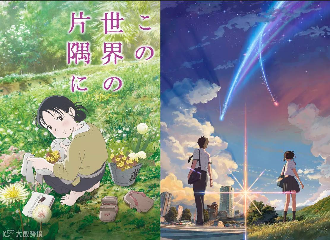 像《你的名字。》《在这世界的角落》中的角色主要通过手绘作画完成,背景虽然也大量采用了手绘,实际上根据场面的不同,也有用到CG技术。比如《你的名字》中一些难以描绘的细节,就使用了3D技术构造空间来辅助作画和美术。还有当中出现的壮观风景,有不少镜头都是用3DCG技术制作而成的。