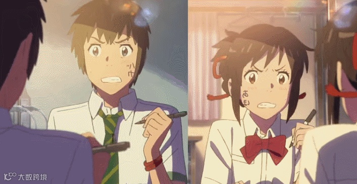 是不是没看过这张图?哈哈哈!这是《你的名字》DVD特典中的一首MV:Sparkle - Your name 这首MV中有另一个版本的结局。泷从神体山回来后不久,与来东京上大学的三叶相遇。这一年,泷17岁,三叶20岁。