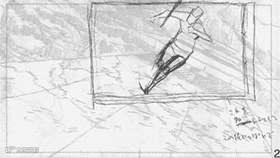 那么谁来画layout呢?偶尔有演出家来画的情况,但是当画面要表现很多事物的时候,就会用到多名layout担当者(在海外被称为layout artist)共同制作。有的特定部分监督会亲自出马,不过一般情况下都是由原画师来画。而在包含CG技术的作品中,CG部分的layout则通过CG软件完成。