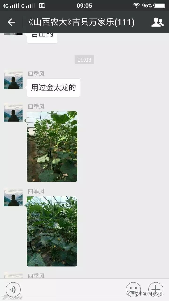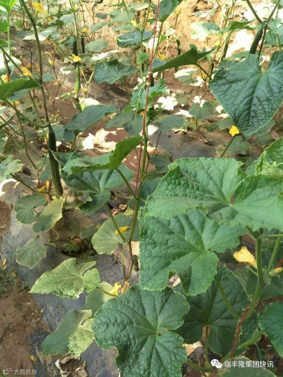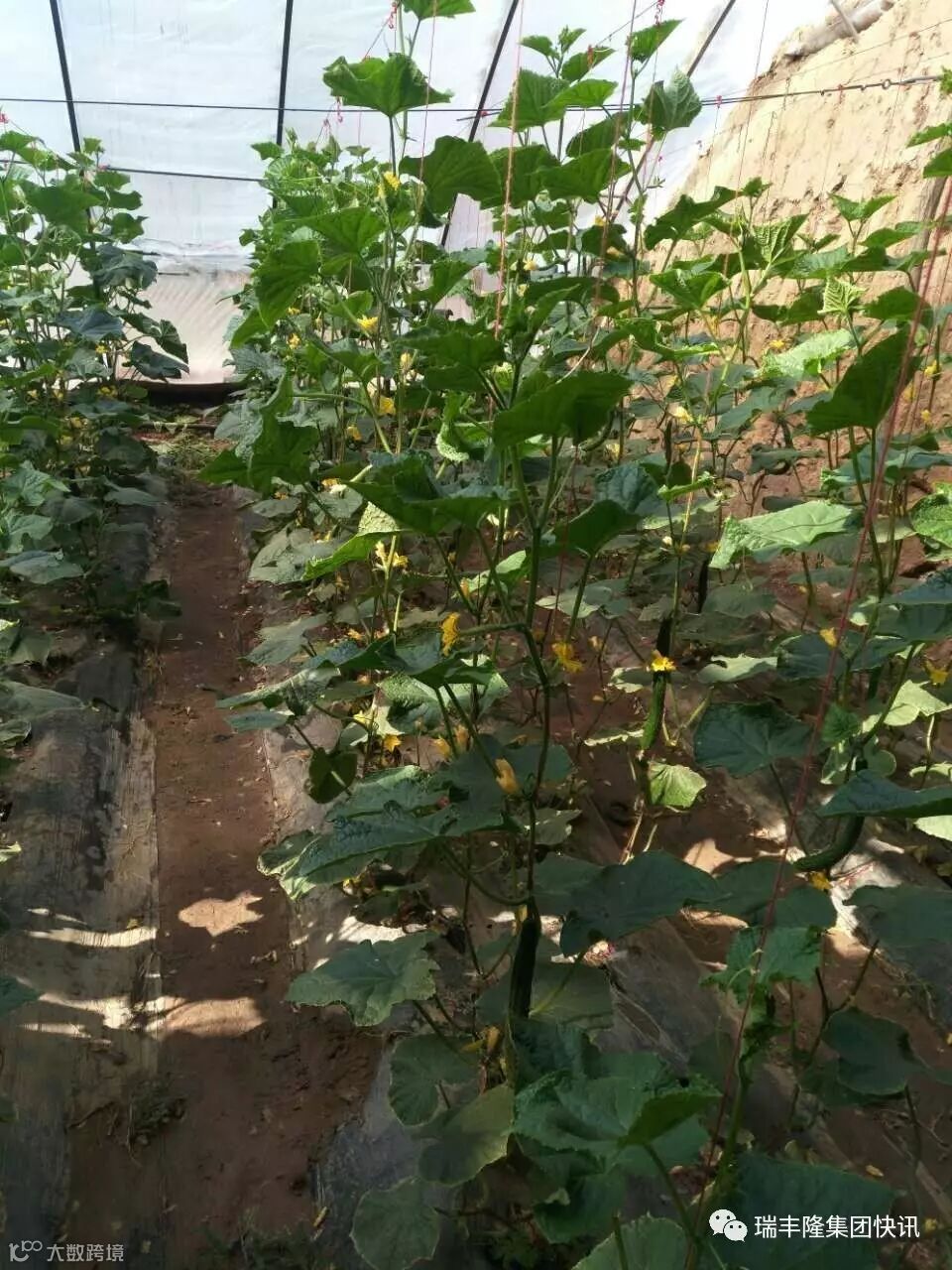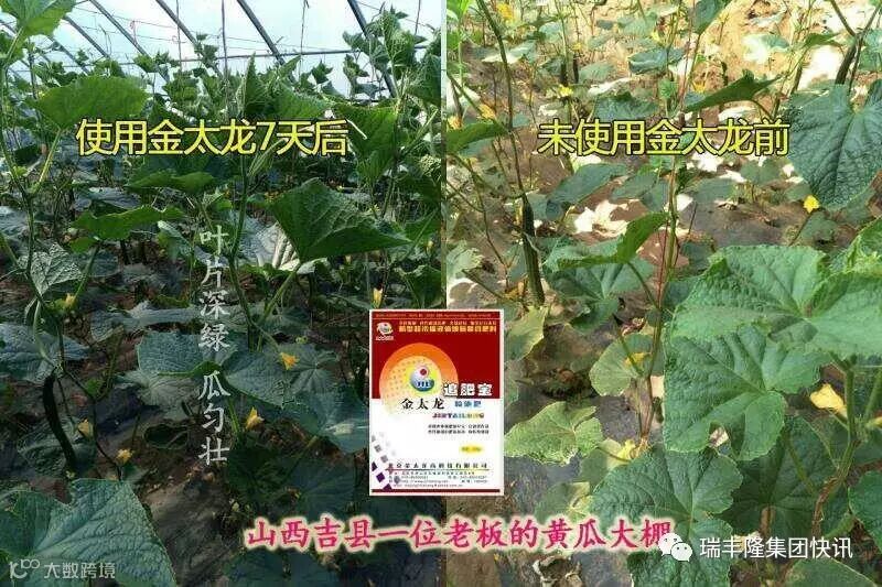 山西吉县使用金太龙后,一个大棚里的黄瓜特意留了对照,一半使用金太龙,一半没有使用。结果很明显,差异很显著——使用金太龙的黄瓜叶片深绿,花多瓜直!用户自己说:用过金太龙的黄瓜太棒了!