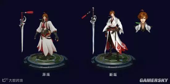 为了强调李白不羁的浪子形象,新版李白在体型上更加高挑潇洒,减少了复杂赘余的大块装饰,在细节上增加精致度,而整体视觉显得更为轻盈。