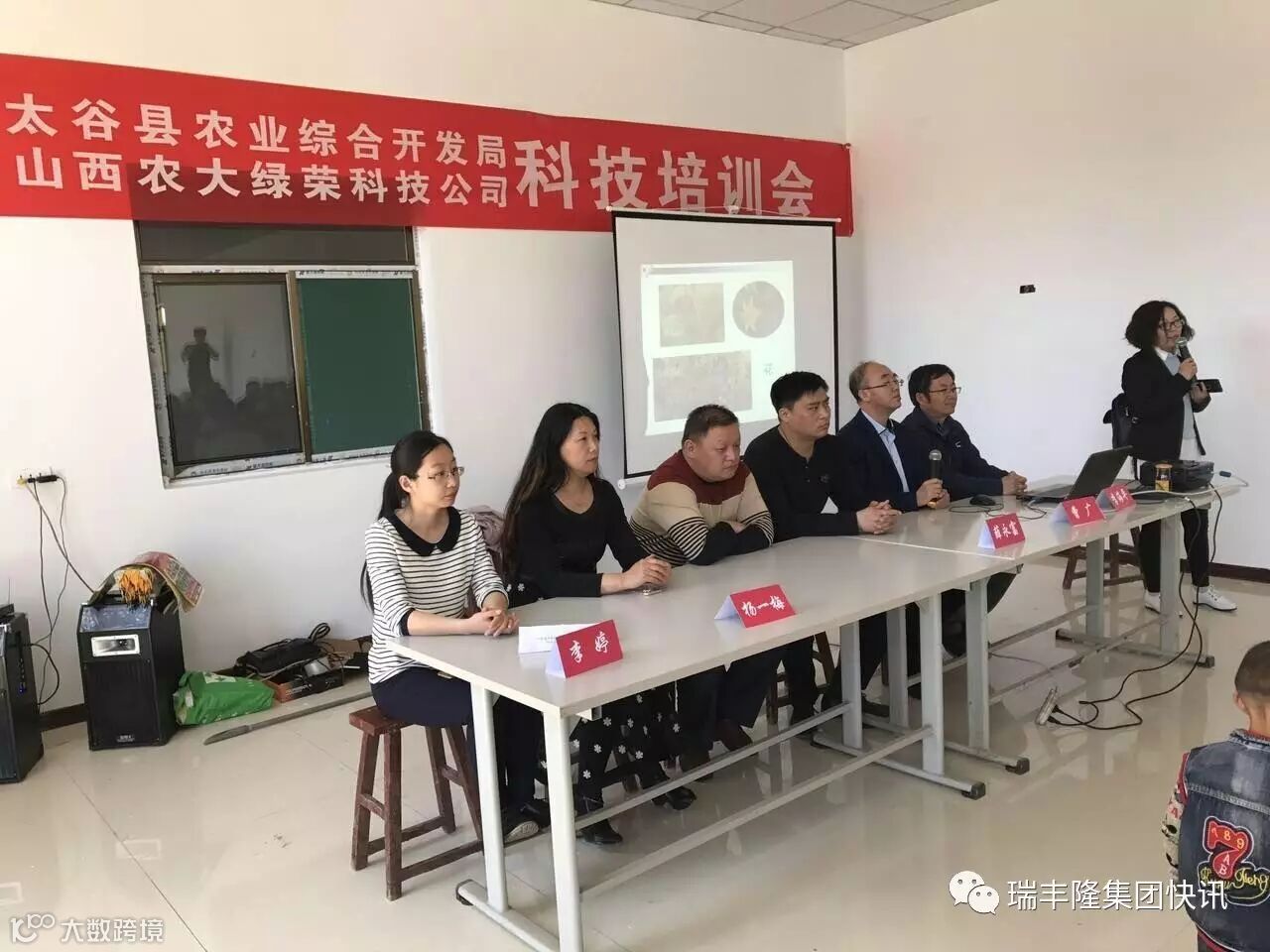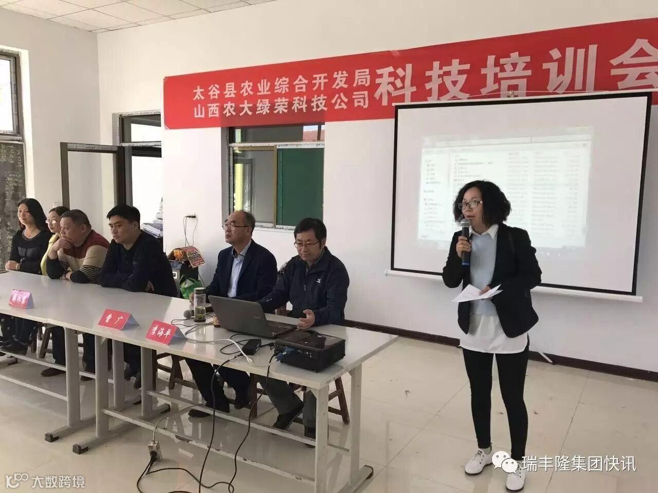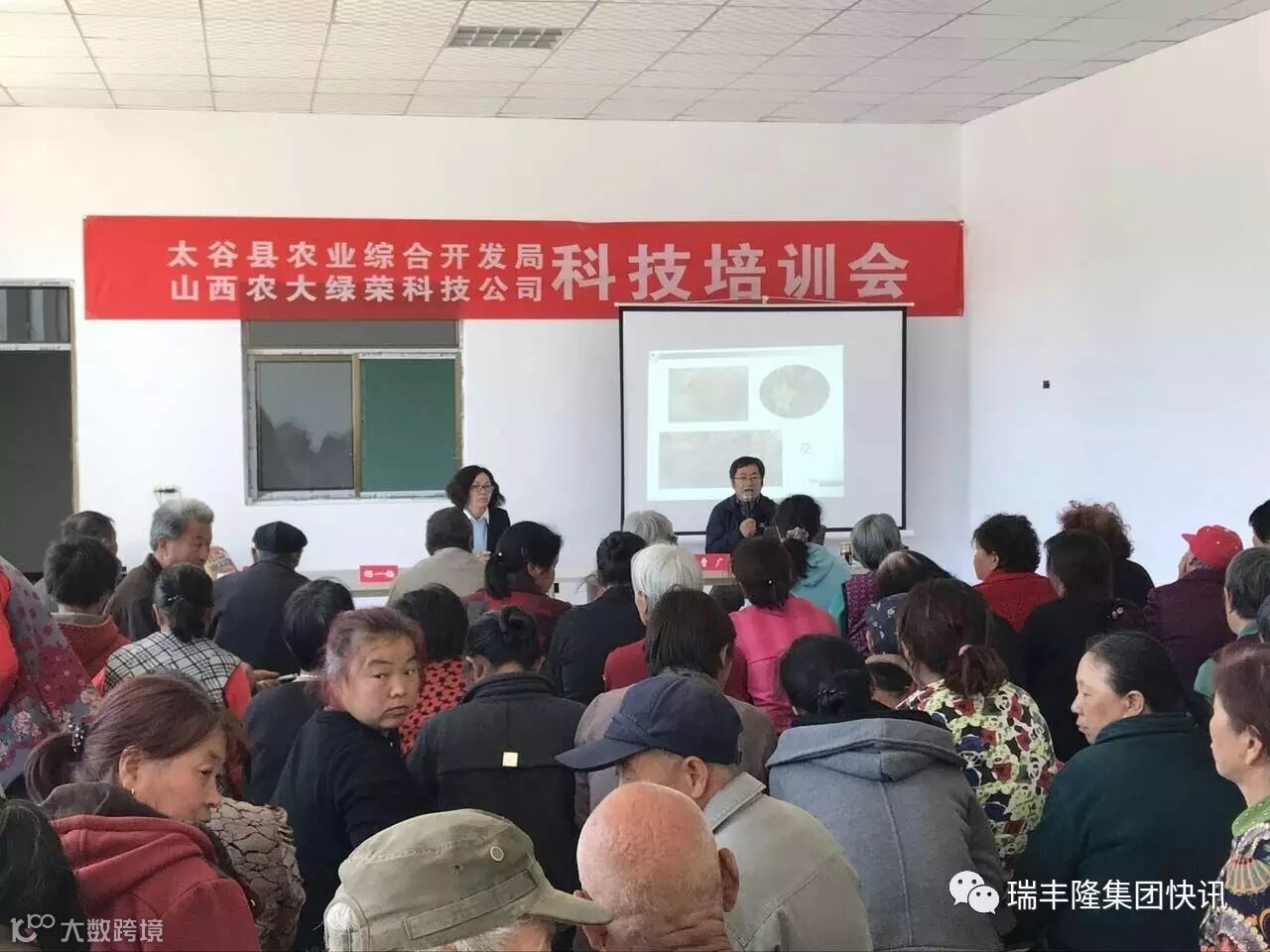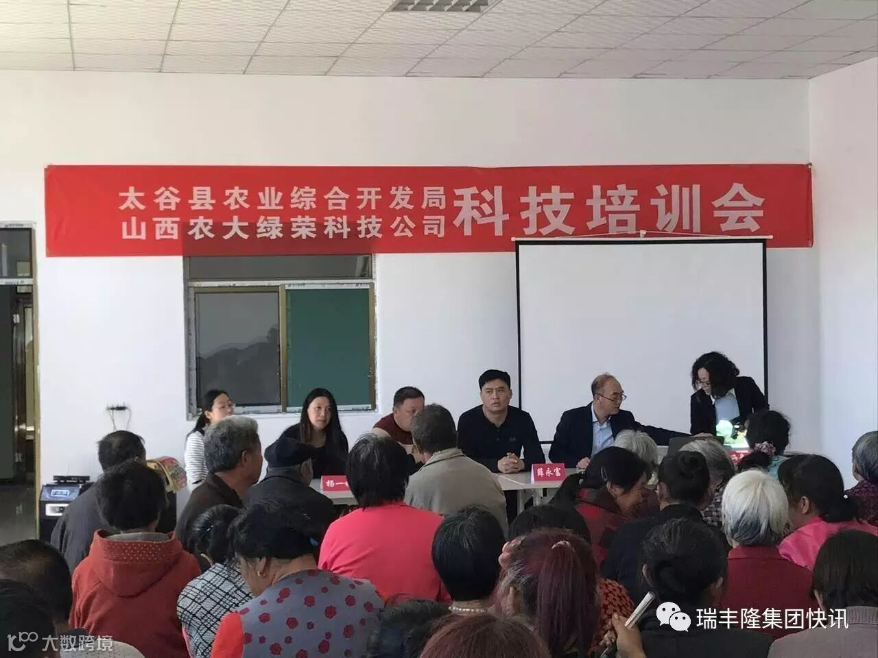 瑞丰隆集团快讯2017年4月18日,山西农大绿荣科技有限公司承办,太谷县农业综合开发局主办,组织专家在太谷县南田受村召开科技培训会。这已经是这个月的第三场培训会,山西农大绿荣科技的专家、教授及工作人员现场同当地群众座谈,了解用户的真正种植问题,并给予解决办法,最后还为参会的农民群众免费发放了山西农大绿荣冲施宝!
