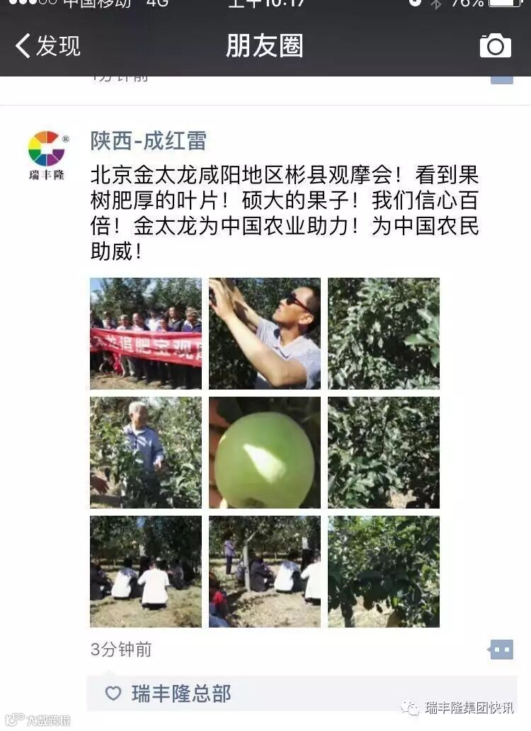 地区彬县观摩会!看到果树肥厚的叶片!硕大的果子!我们信心百倍!金太龙为中国农业助力!为中国农民助威!