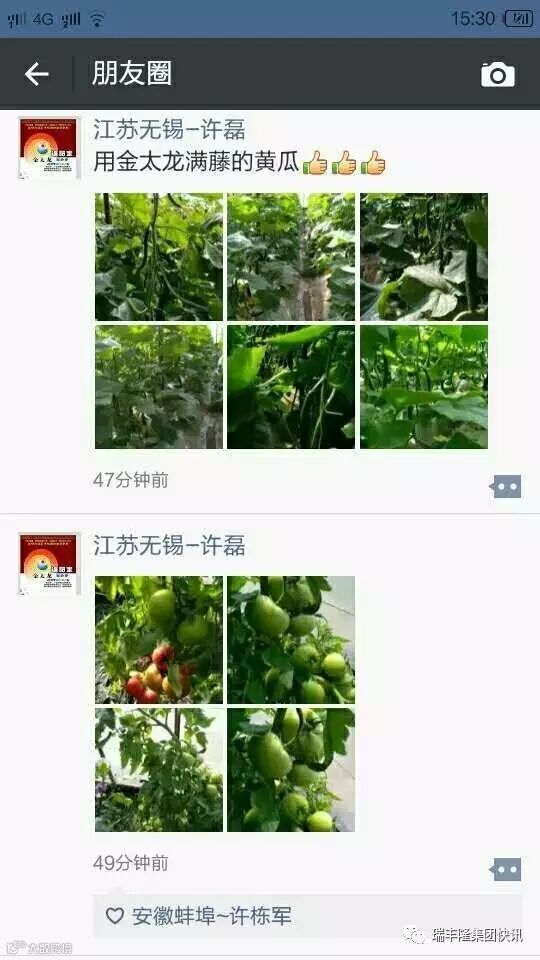 前十天刚刚启动市场,前一个星期刚刚收到货物。短短7天时间,拼的就是速度,江苏无锡市场启动了示范田,并于昨日传回效果图片——满藤的黄瓜、西红柿,金太龙追肥宝效果初显,提振江苏无锡市场部信心!金太龙如此给力!江苏无锡市场如此给力!