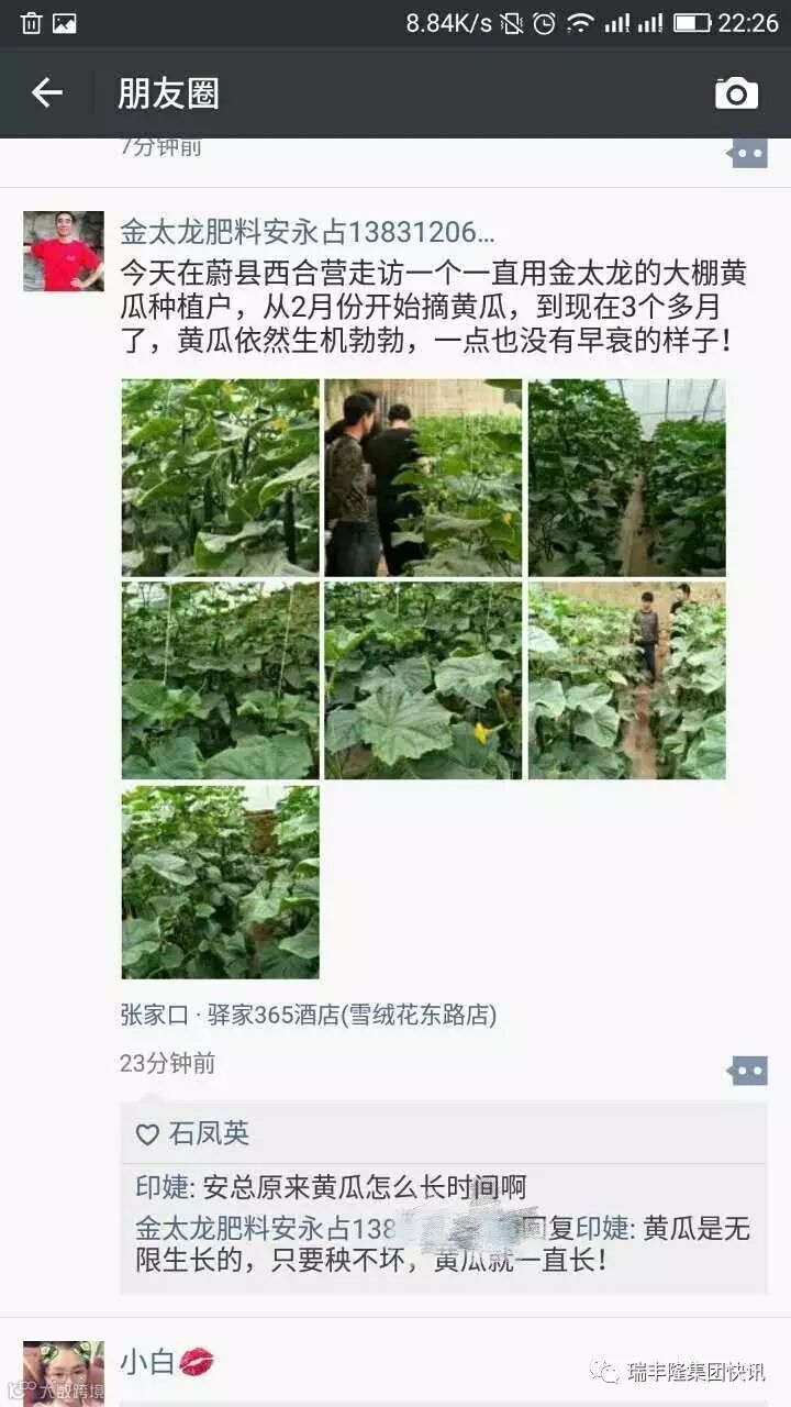 导读:金太龙河北大区的安经理走访客户的过程中,在蔚县西合营走访一个一直用金太龙的大棚黄瓜种植户,从