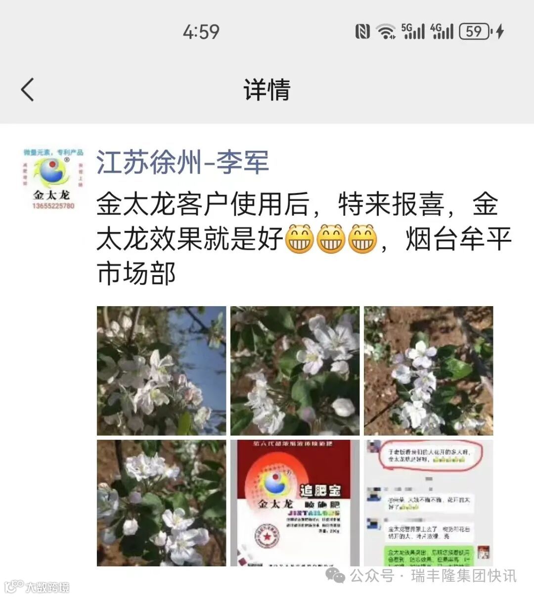 导读:山东烟台牟平市场部特来报喜看苹果花开,品果农心情——金太龙效果真好!用了金太龙的苹果树开花大,树势强,为高产夯实了基础!