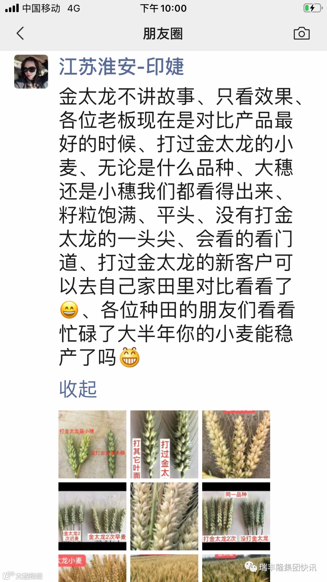 导读:金太龙不讲故事、只看效果、各位老板现在是对比产品最好的时候、打过金太龙的小麦、无论是什么品种、大穗还是小穗我