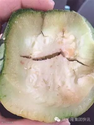 1.“西瓜太郎”问:西瓜这是怎么了,中间空心,还有点发褐色,外面畸形,还有办法防治吗?