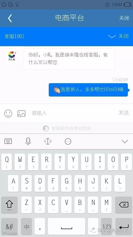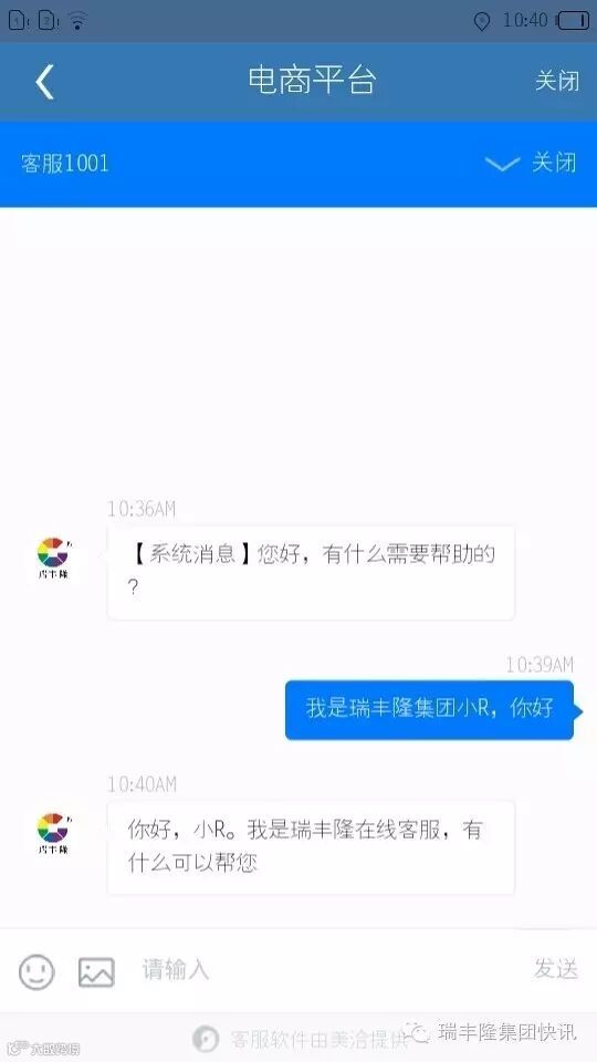 面对如今电商、微商、O2O、B2B五花八门的发展创新,快步向前。瑞丰隆集团在2015年初建立并完善了自己的电商平台(www.ruifenglong.net),并与近日增加了手机端APP(扫描或长按顶部二维码自动安装)的在线客服功能。在线客服,就是以手机APP(扫描或长按顶部二维码自动安装)为媒介,客户端访客(您)只需点击网页中右下角的蓝色对话图标,无需安装或者下载任何软件,就可以与客服人员(集团工作人员)实时交流沟通。小R作为新人菜鸟,率先体验了一把: