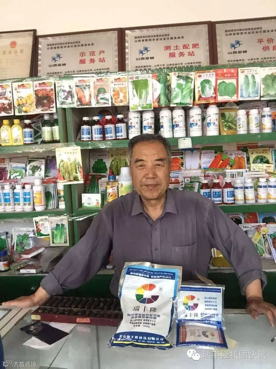 山西省祁县“瑞丰隆服务站”挂牌于2015年10月28日,祁县是晋中地区乃至全省的种粮大区之一。小麦种植面积达到70万亩,玉米种植面积达40万亩,辣椒种植面积达10万亩,花生种植面积23万亩,棉花种植面积39万亩。在服务站的努力下建立“绿荣玉米、蔬菜配方肥示范田”近万亩,全县遍布网点128家。为祁县人民增产增收做出了极大的贡献。