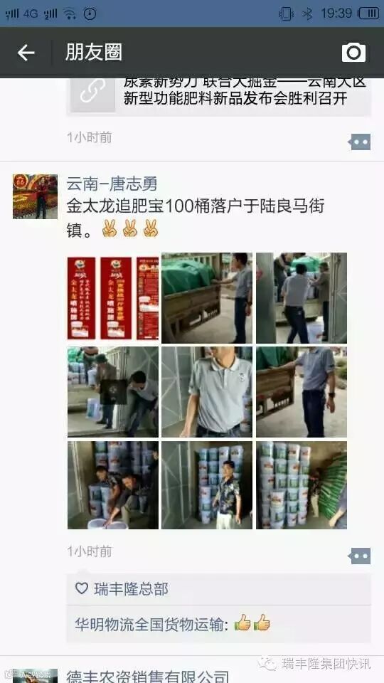 图为云南陆良马街镇客户对“金太龙追肥宝”的认可与对公司产品肯定的表现,直接来100桶!信心满满哒!