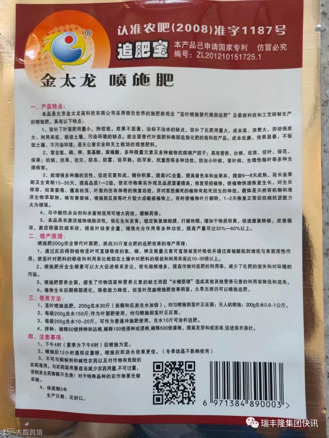 具体使用方法:兑水3倍,和种子均匀搅拌,阴干后播种。按一包金太龙200克计算,兑水350-500克,可拌种50公斤左右。