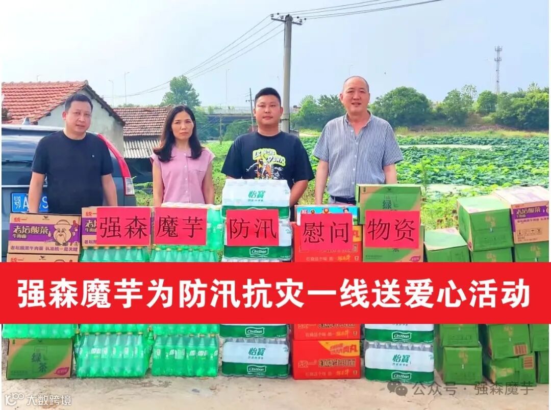 7月3日下午3点,受强森魔芋总经理委托,鄂州华容工厂杨庆华厂长一行,携带纯净水、方便面等物资,来到鄂州市华容区五四湖防汛五分村哨所,看望和慰问值守人员,感谢大家夜以继日的坚守。五分村姜书记代表值守人员接受了捐赠并表达真诚的谢意。