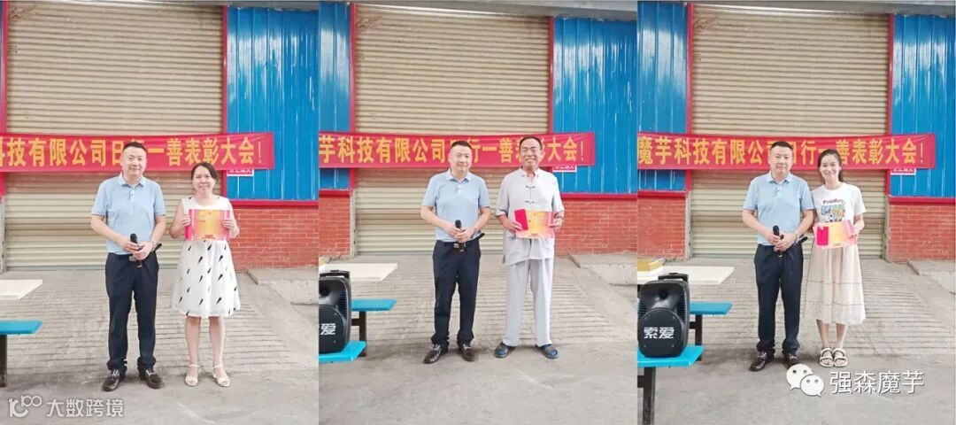 在工厂仓库门前召开“阿米巴哲学落地”