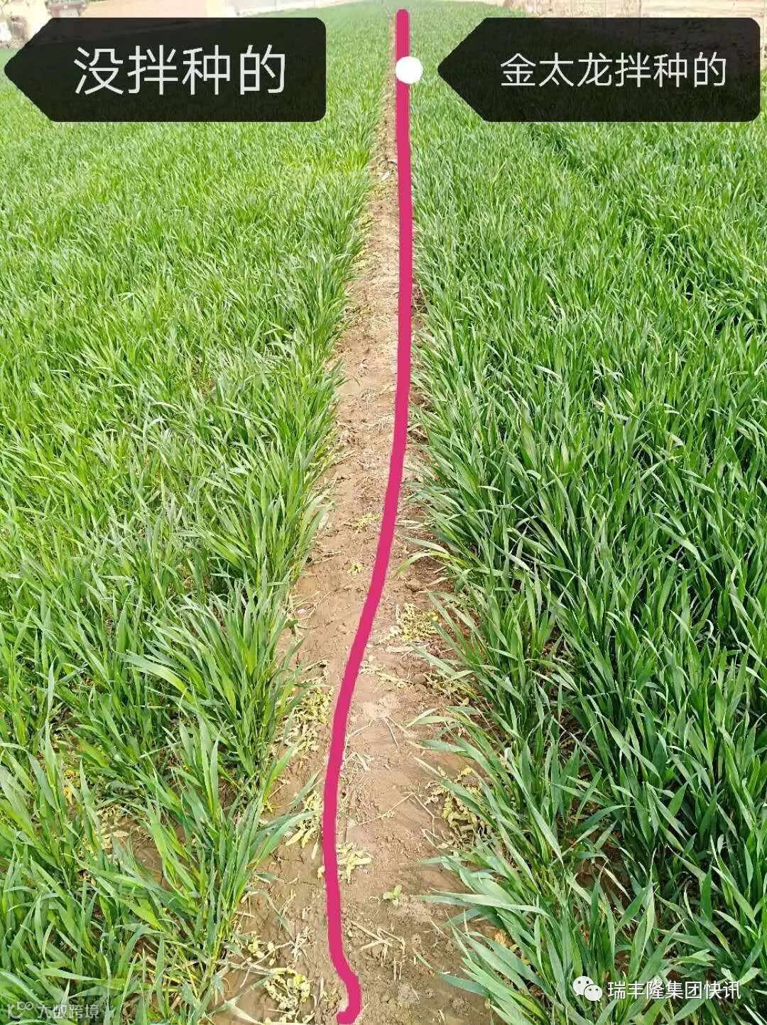 导读:廊坊市固安县东湾乡北固城村用金太龙拌种的小麦再用金太龙喷施两遍长势更好,籽粒更饱满!对比很明显!田间我当家,