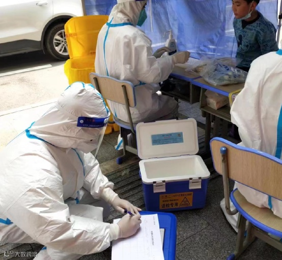 核酸采集时间集中,转运样本量大,全体队员集体行动,协同配合,即使每天腰酸背痛,他们也无怨无悔,任劳任怨,始终坚守在最前线,为阻击“疫”情蔓延逆行而上。