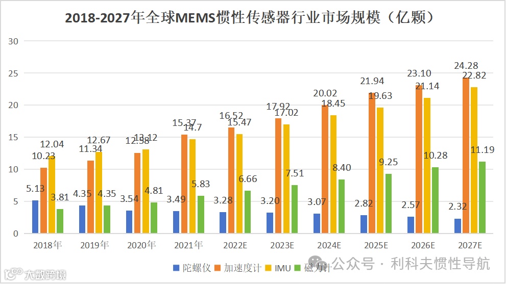 注:磁力计市场规模相对较小,数据未列入图表