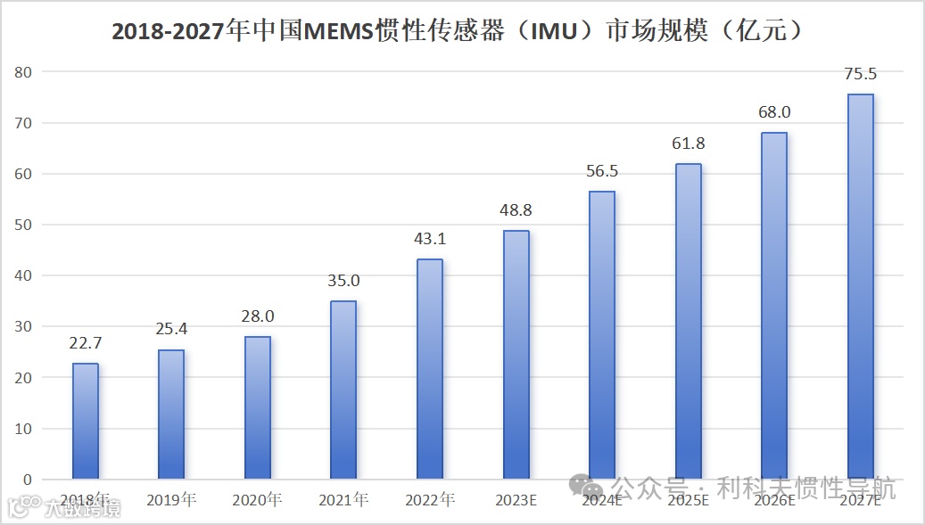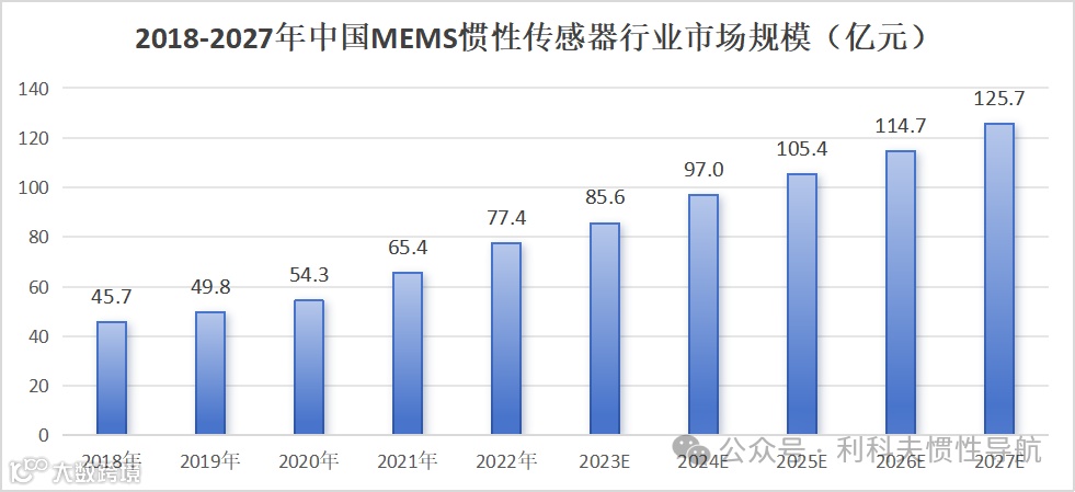 根据芯谋研究数据,中国MEMS惯性传感器市场规模由2018年的45.7亿元增至2022年的77.4亿元。2022年以来,自动驾驶快速发展,高精度定位导航需求牵引与当下汽车市场销量兴旺趋势下,MEMS惯性传感器(陀螺仪)刚需爆发,预计中国惯性传感器市场将以10.2%的增速快速增长,至2027年增长至125.7亿元。
