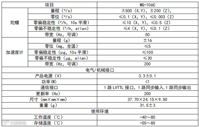以MG-106C车规MEMS惯性测量单元为例,针对以车载导航为代表的需求而研制的。系统采用了多冗余的MEMS惯性传感器,并且针对乘用车的特点,航向轴选用了可比拟中低精度光纤陀螺精度的Z轴MEMS陀螺,可以保证产品在卫星失锁后保持很高的航向精度。