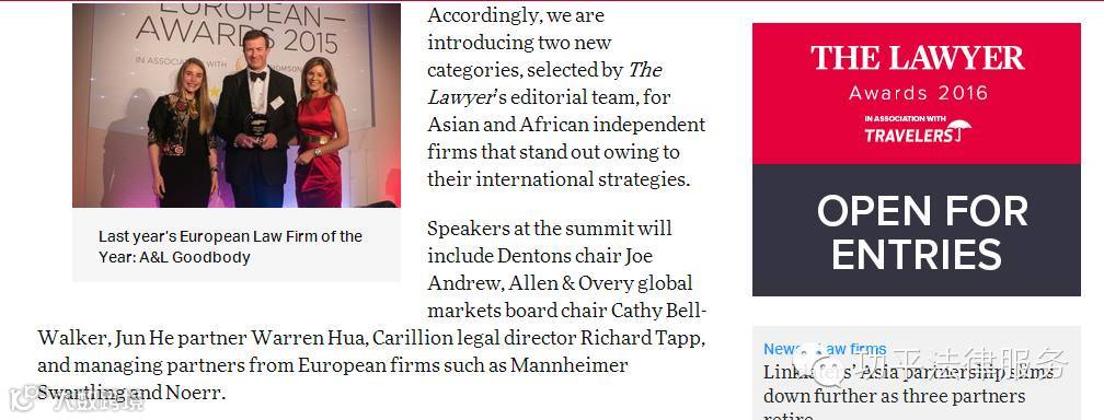 以下为 The Lawyer 发布的相关报道: