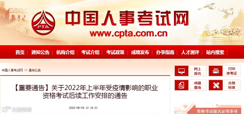 。请确因疫情影响未能参加上半年考试的考生随时关注报名地考试机构网站通知信息。
