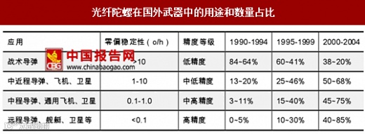 20 世界 80 年代以环形激光陀螺仪为主的捷联惯性导航系统在国际上如美国、俄罗斯、法国等处于大面积应用推广阶段,也正在取代挠性陀螺,是继液浮陀螺、挠性陀螺之后的第三代惯性仪器。由环形激光陀螺仪组成的激光捷联惯性导航系统主要应用于各类型导弹、飞机、卫星、火箭、鱼雷、主战坦克、自行火炮、侦察车、导弹发射车、军用机器人等领域作为姿态基准或定位定向设备。