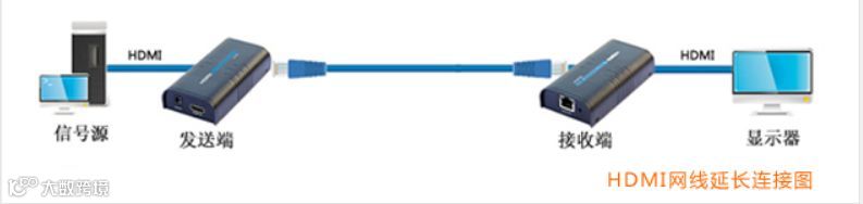 用HDMI网线延长器来将信号延长,HDMI网线延长器分为发送端(HDMI输入,网线输出)和接收端(网线输入,HDMI输出),可以延长100米(5类网线)、120米(6类网线)。