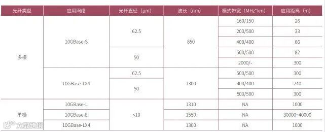 2、10G以太网单模与多模波长、带宽与传输距离对比