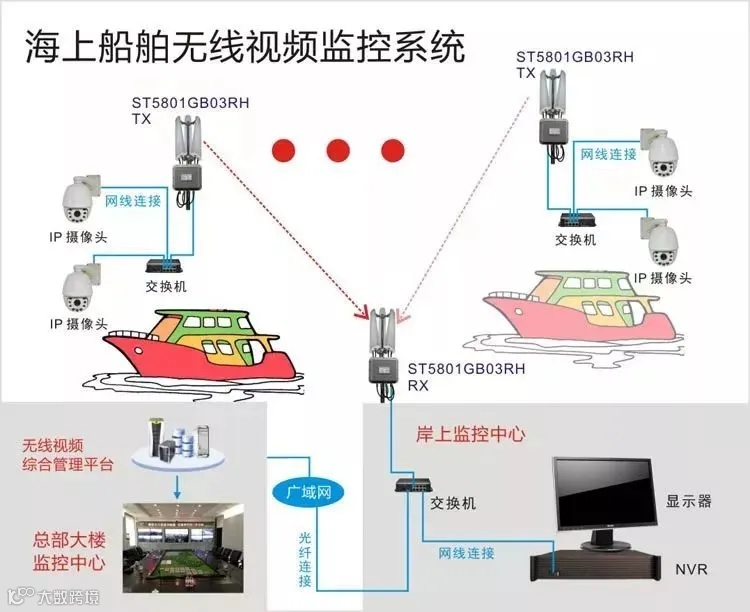 海上船舶无线监控系统结构: