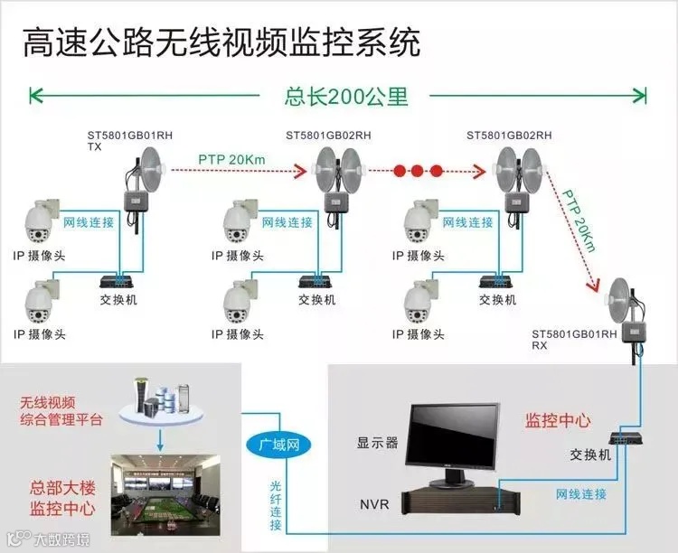 高速公路无线视频监控系统结构: