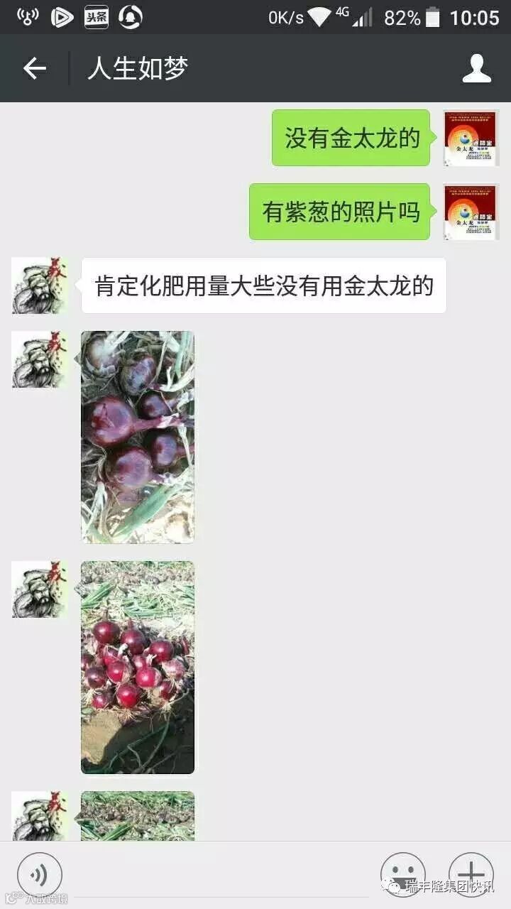甘肃一位种植洋葱的用户,前后共使用四次金太龙,现在洋葱喜获丰收,亩产达到9600斤!这位用户对金太龙的增产增收效果深信不疑,根据这位用户的反馈:使用了金太龙的洋葱个个都是精品!