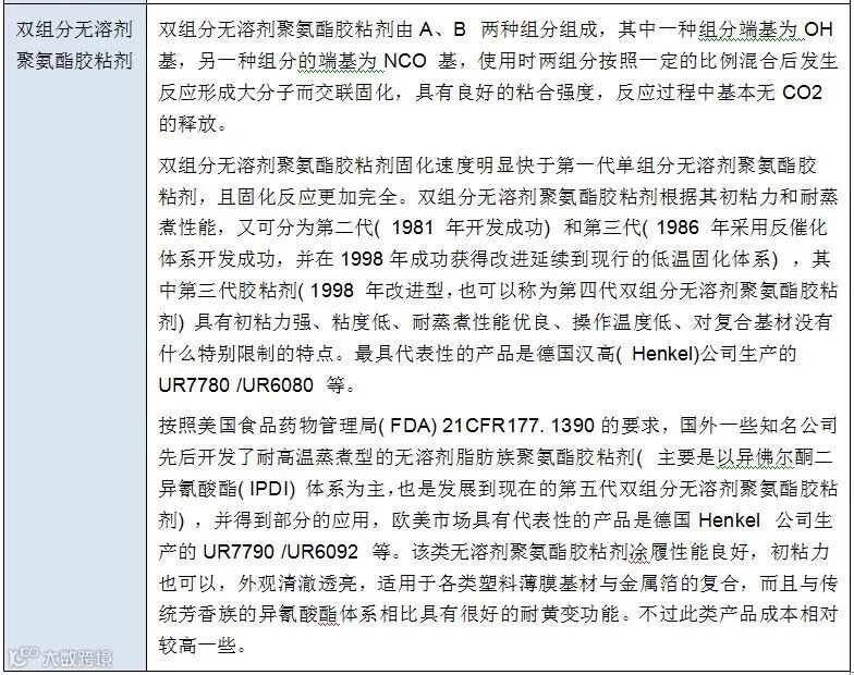 第二阶段是八十年代到现在以双组份聚氨酯胶粘剂为主导,挤出复合胶粘剂为辅。
