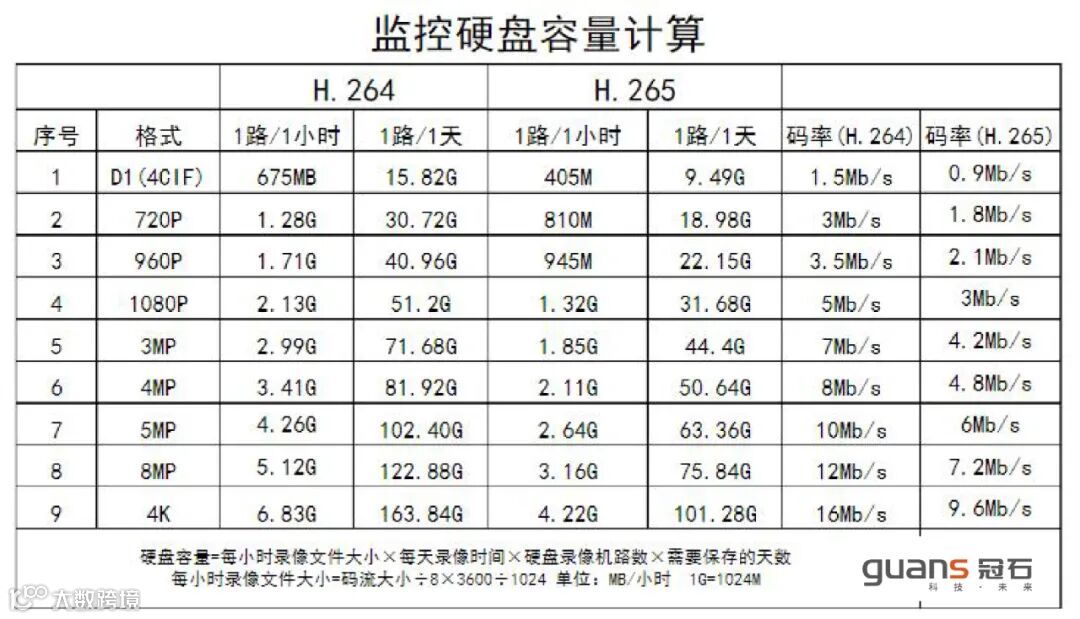 先计算出全部前端摄像机图像所需的存储容量,除以单块硬盘容量,得出盘位数,再加上RAID所需管理盘数量,热备盘数量,得出阵列盘位数。