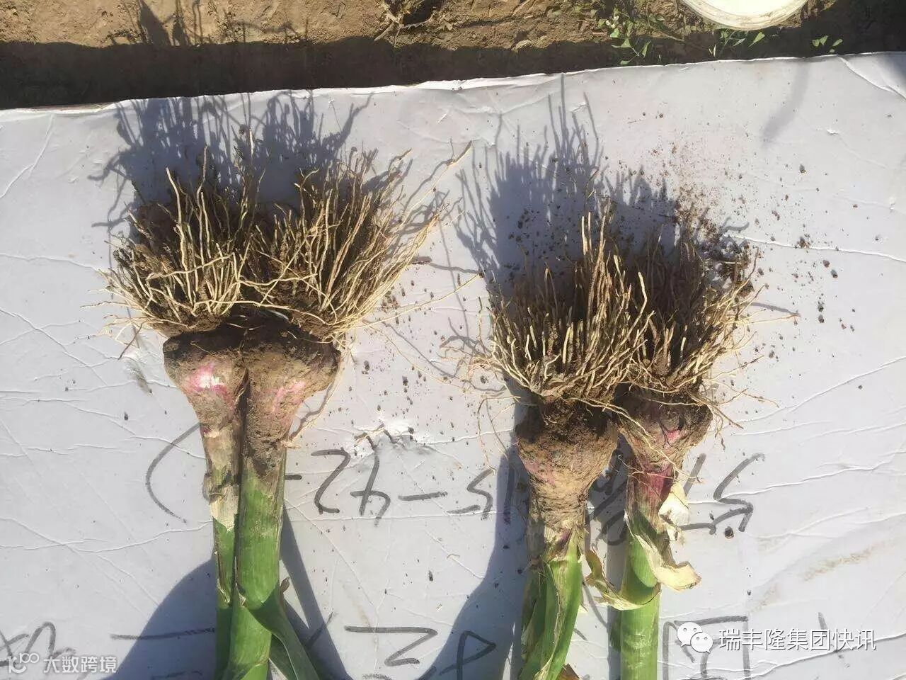 瑞丰隆集团快讯山西临汾地区杨经理在大蒜基地为金太龙用户上了生动的一课:用户说使用金太龙后看不出效果,杨经理说没关系,如果没有效果双倍退款,就这样双方到地里一看,感觉长得是一样,然后杨经理分别剜了两颗蒜苗拿到用户跟前,用户当场表示:金太龙的效果自己是心服口服!金太龙是作用于根系的超浓缩液体喷施肥,因此有时只看表面现象很难区分,建议大家多做根系对比,效果更明显!