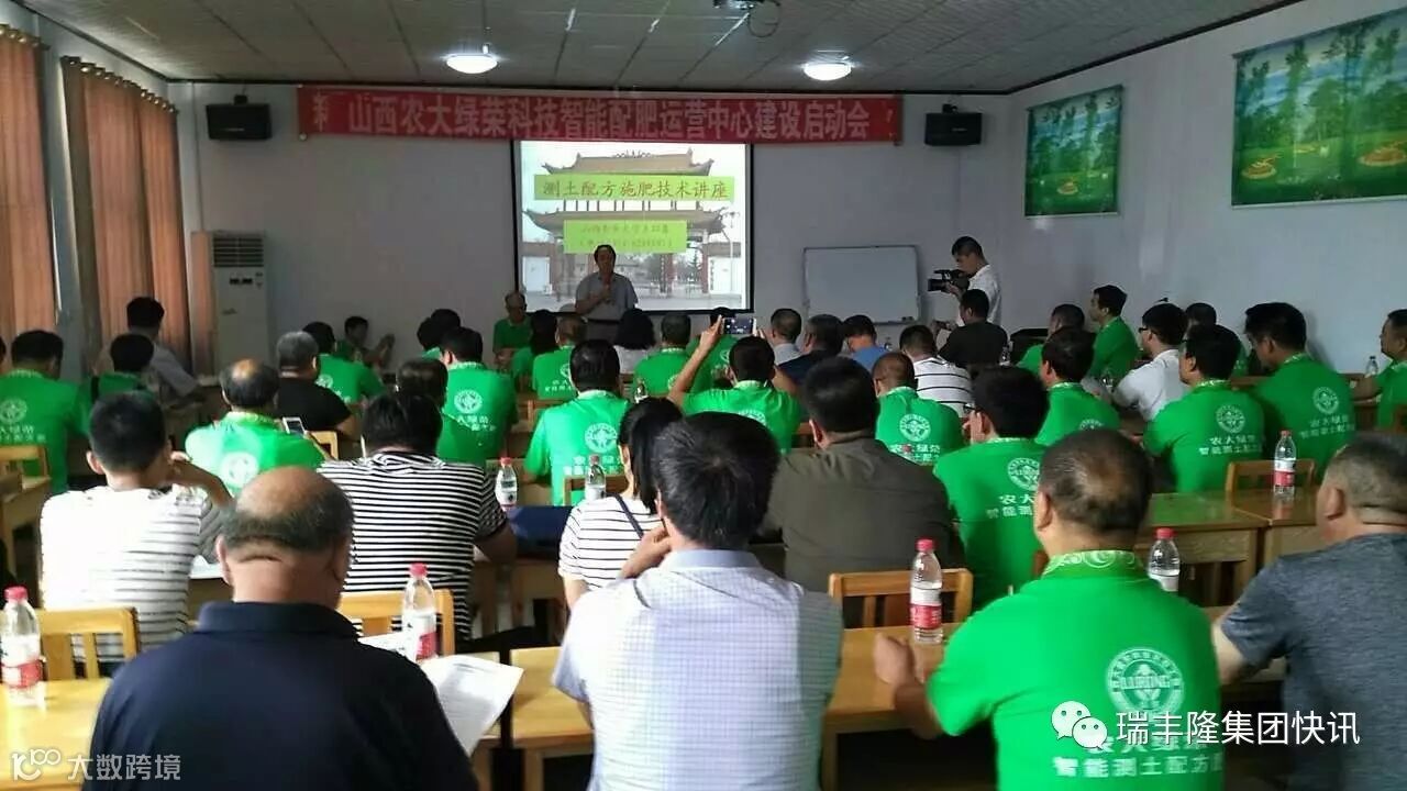 瑞丰隆集团快讯重大喜讯!农资届颠覆性技术革新模式:山西农大绿荣科技团队苦心钻研两年的智能测土配肥系统,在新绛县和太谷县两个试点县试运营成功!并开始在山西各县开启连锁经营加盟。公司于2017年8月8日在新绛县召开“山西农大绿荣科技智能配肥运营中心建设启动会议”,本次会议将首次掀起农资颠覆性技术革新的新模式的神秘面纱!8月8日上午,启动会议在山西奥迪丰肥业有限公司正式开幕。