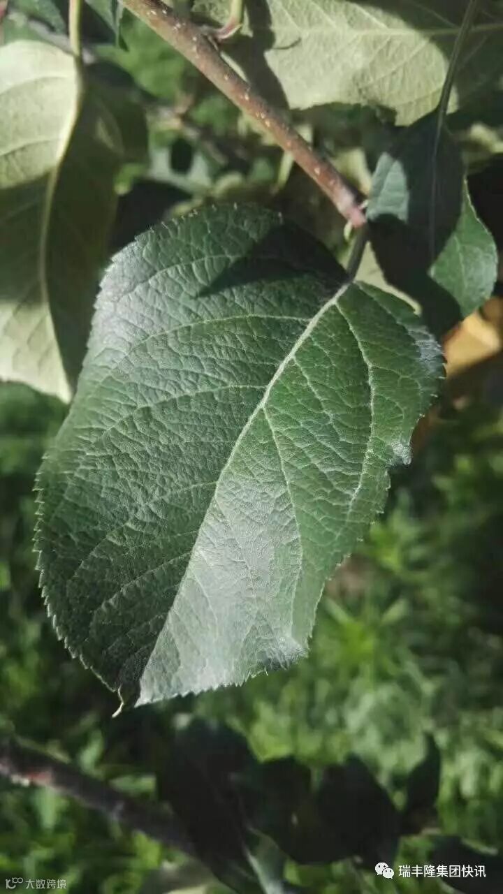 重点看:苹果树的叶片深绿厚(喷施金太龙的效果)